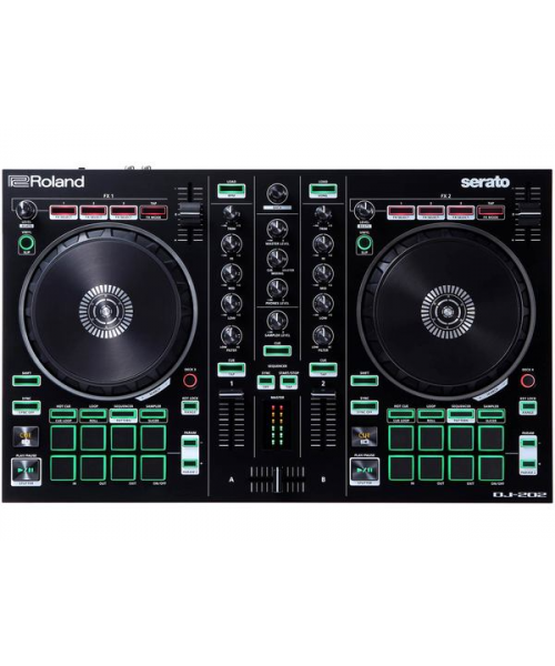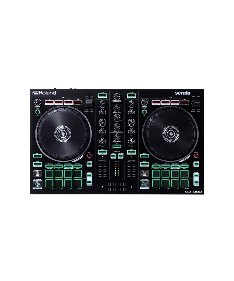 Roland DJ-202 The DJ Intro Serato Controller that looks to the future, and offers DJs all the features and layout of a complete professional controller in a robust and portable unit. The compact DJ-202 preserves the concept of the flagship DJ-808 and DJ-505, providing a flexibility without comparisons for mixes, remix, immediate production of beat, during your live or studio performances. With its large dishes at low latency, pads and dedicated transport controls, the internal sequencer, and the microphone inlet with professional effects for the voice, the DJ-202 offers you more functions and features of any other controller in its category.