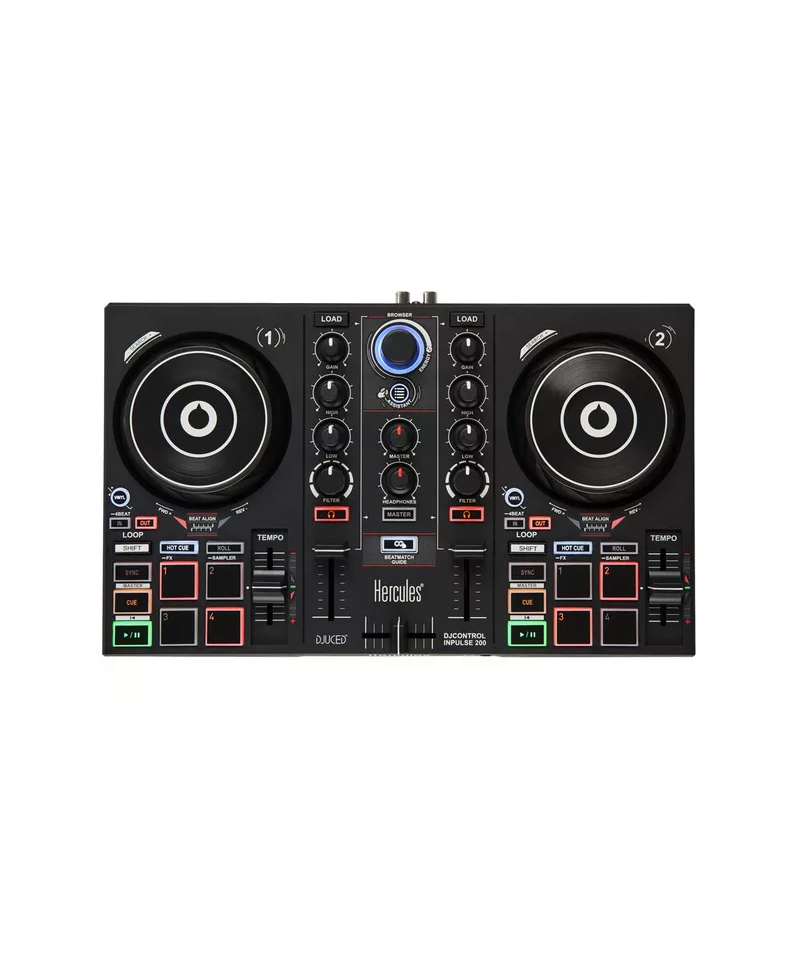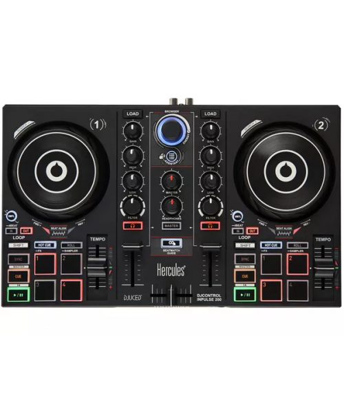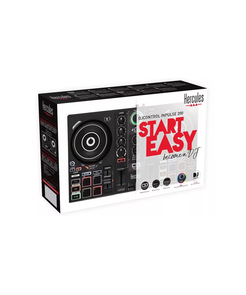 Hercules presents the absolute first range of DJ controller to really learn to mix. Train your ear to manually manage the beatmatching with DJControl Input 200. The easy to use design and its comfort, make it a perfect controller to learn the art of DJs. Controlled by the DJUCED software, DJControl Inpulse 200 offers new features that will help you learn: Luminous guides on the controller to learn the right movements, the Intelligent Music Assistant (IMA) to help you select the best songs to play, the function ENERGY To manage the mood of the evening, in addition to the DJ Academy, with integrated video tutorials