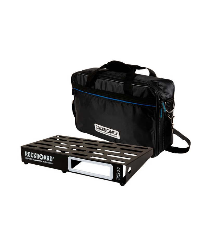 Rbo B 3.0 Tres B - Pedal for pedals effect with padded bag - Capable of staying approximately 5/10 pedal effects (depending on the size) - Made of aluminum - Light and resistant - Powder-painted - Assembly holes for LED Rockboard Light (not included) on the right side- U-shaped additional support bracket for greater rigidity - 10 degree inclined surface and absolutely flat without welds - Slot for housings Patch mod Rockboard - Upholstered bag included - Pedal size: 44.2cm (width) x 23.4cm (depth) x 3.7 / 7.1cm (height including rubber feet) - Internal size bag: 48.0x26.0x12.0cm - Pedaling weight: 1, 0lbs - Bag weight: 1, 2kg - Pedal color: black - Included: 1x Velcro Width 5cm + 1x Velcro Width 2.5cm + Clamps.