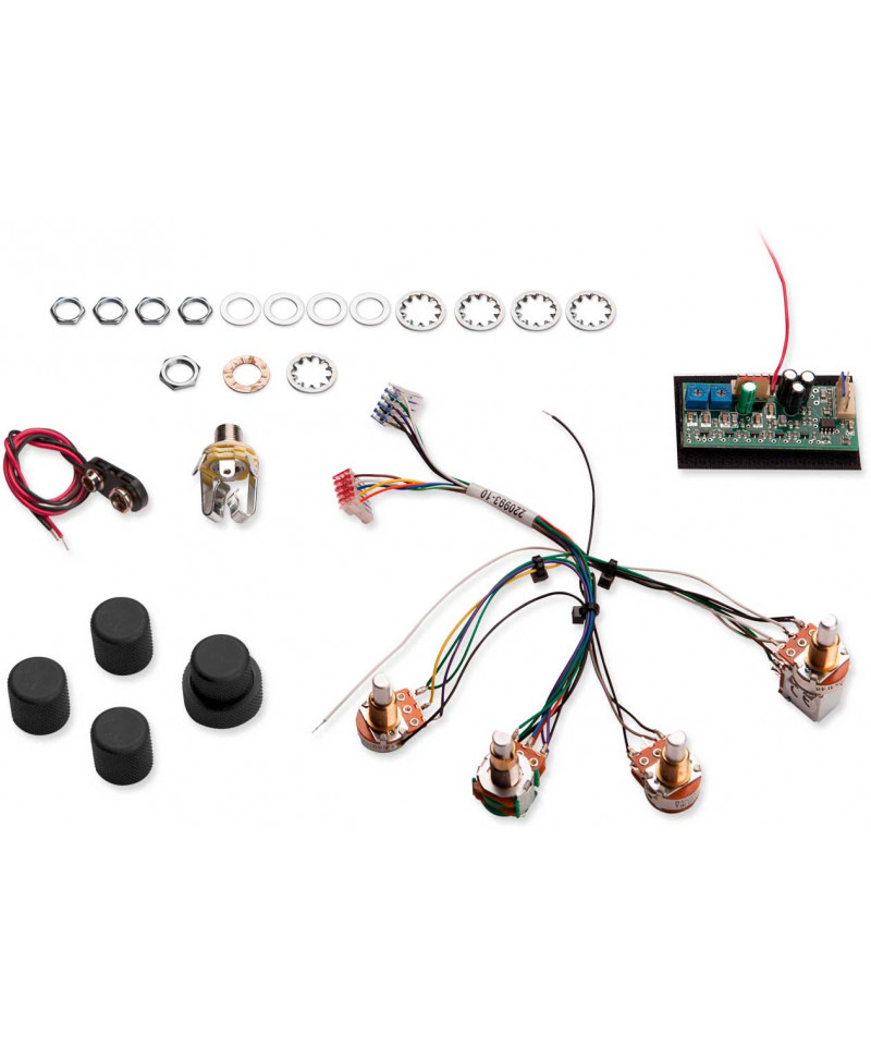 We offer high-Headroom, Low-Noise, 2-Band and 3-Active Band Onboard EQ Preamps for Use with Both Active and Pickups. Each Active Bass Preamp Comes With High-Quality Potentometers on pre-Wired Harness, Battery clip, and Knurled Black Dome-Style Knobs. (Volume / Slap Switch, Blend, and Concentric Bass and Treble Controls for STC-2p and STC-2a) or Four Control Knobs (STC-3a and STC-3P) and to Single 9V Battery in The Control Cavity. Two 9V Batteries Can Be Wired Together in Series For Added Headroom. We includes all hardware measure: high-Quality Potentometers on pre-Wired Harness, Battery clip, and Knurled Black Dome-Style Knobs.