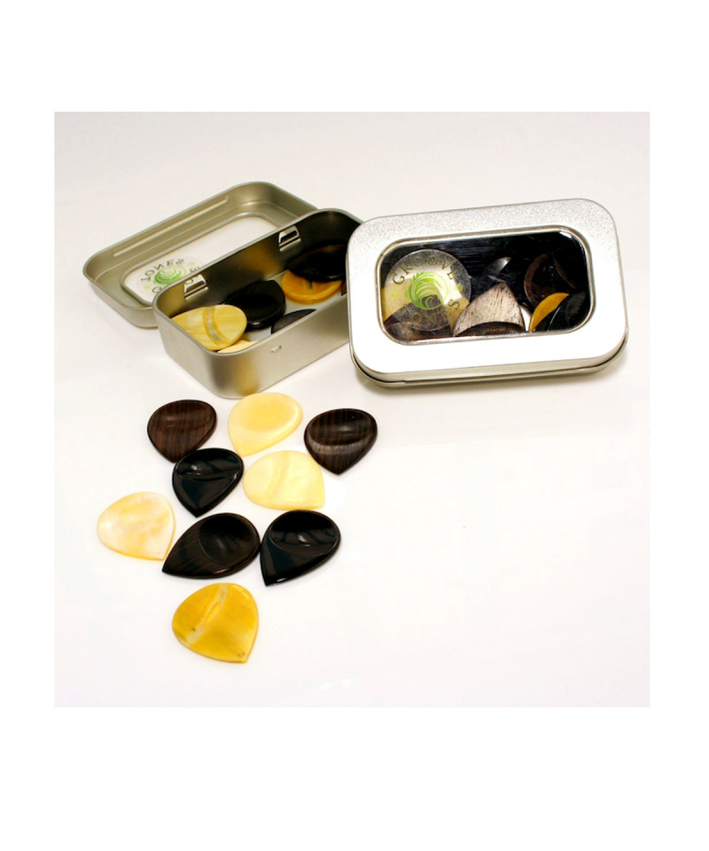 Pack of 20 plettri groove tones, ergonomic thanks to a recess for the thumb and a groove, on the other side, for the index. Suitable for jazz style and made of bone, horn and wood. A great gift for any guitarist.