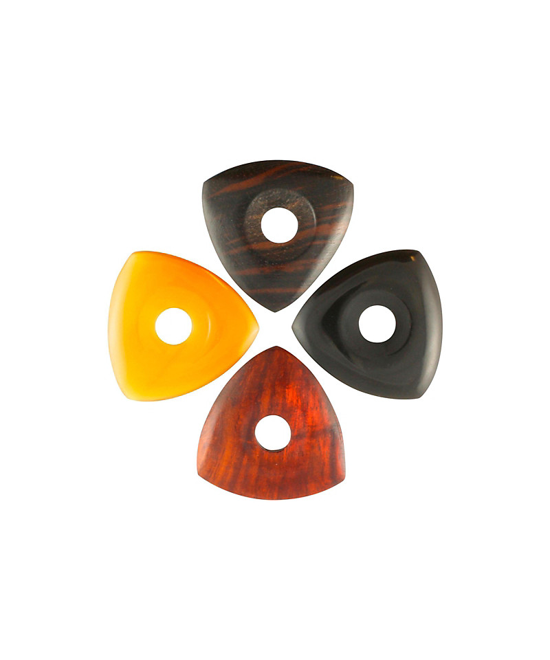 4 plettri envelope designed for lovers of the heavy plettrate '. They are made in different materials (ebony, black and white horn, Indian chestnut). The three large tips make these plettres ideal for the Jazz or electric bass gypsy. A great gift for any guitarist.