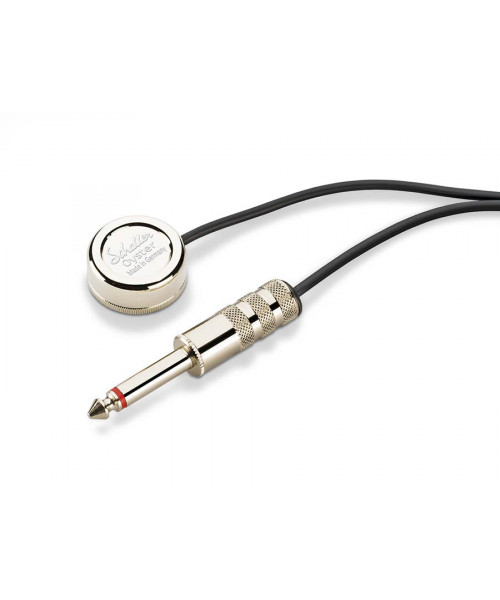 Piezo pickup for acoustic guitar, Oyster S / P model, single, equipped with 6.3 mm male jack for external mounting, 320cm cable. The Schaller Oyster S / P is a passive piezo pickup that gives the instrument a warm and natural sound without the need for active switches or preamplifiers. The exceptional sound quality is obtained through the perfect interaction between three elements: the membrane, piezo and the high quality contact gel. All Oyster models must be fixed to the instrument or through a double-sided tape (recommended for pretty resonant guitars) or through removable adhesive pads that do not damage the surface of the instrument. Pickup 74PF capacity, minimum recommended impedance by 1 at 5 Mohm.