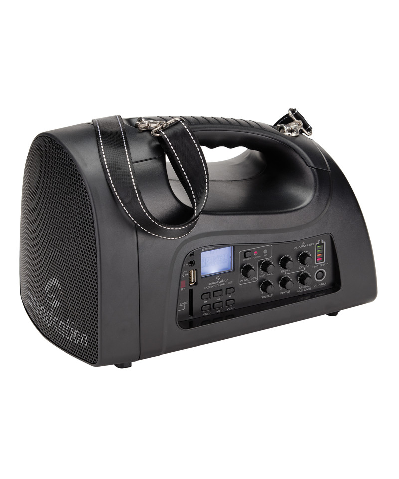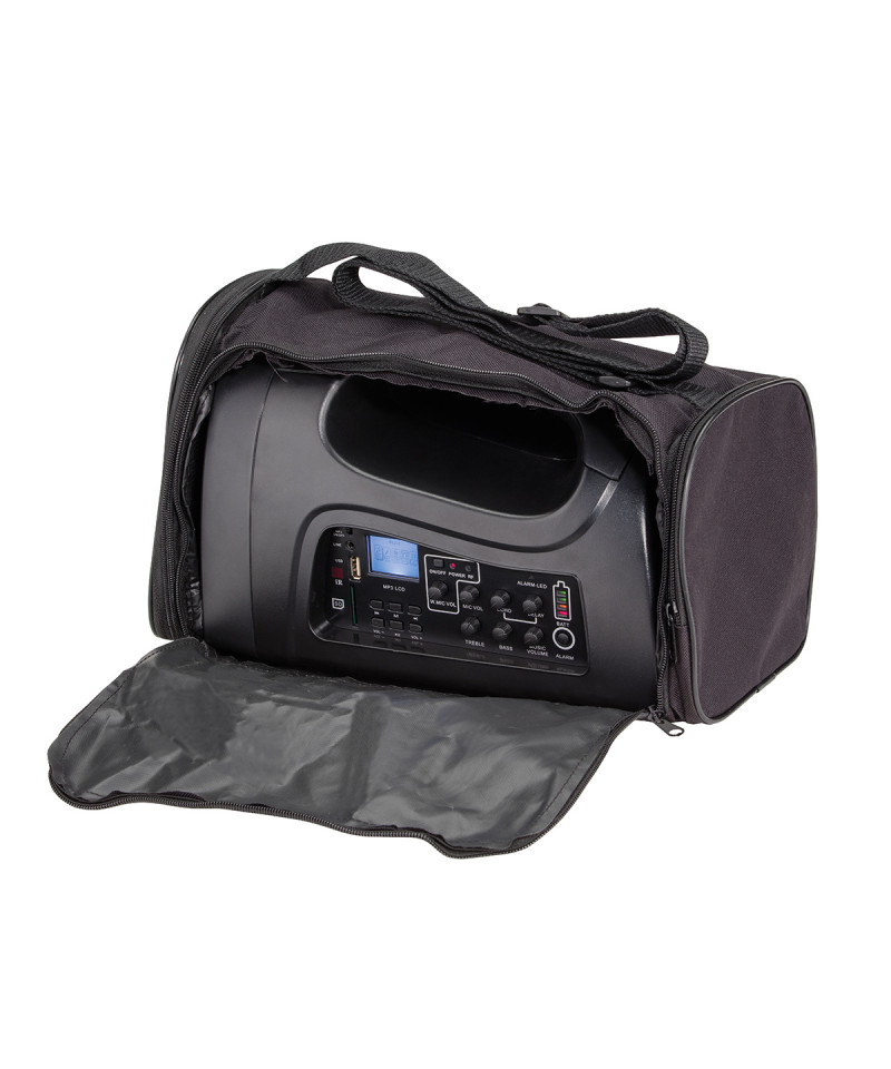 Dedicated to all those who need maximum portability and are on the road, the pocketlive u16hbt is a mini 35w battery PA system with professional UHF radio microphone to 16-CH, MP3 player with Bluetooth, line and microphone inputs and much more. The weight of about 3kg (included batteries), shoulder strap and practice bag make it suitable for practically every situation where you need to be heard but you do not have even an electrical socket: Daluolus in school contexts, in small country fairs, sports contexts, Religious, tourist and much more. The batteries have a duration than 5 hours continuous with maximum charge and maximum volume. The 16-channel Handheld 16-channel Handheld radio icon (863-865MHz) also allows for environments with high radio interference and does not require any special authorization throughout the European Community. The MP3 player with Bluetooth, SD-Card and USB allows you to play your playlists and can also be commanded through a very practical remote control. The bag, equipped with shoulder strap and large side pocket, has an opening with a closed network and hinge at the speaker, and allows the use of the PocketLive U16 even inside the bag. Finally, a hole is present under the lamp.