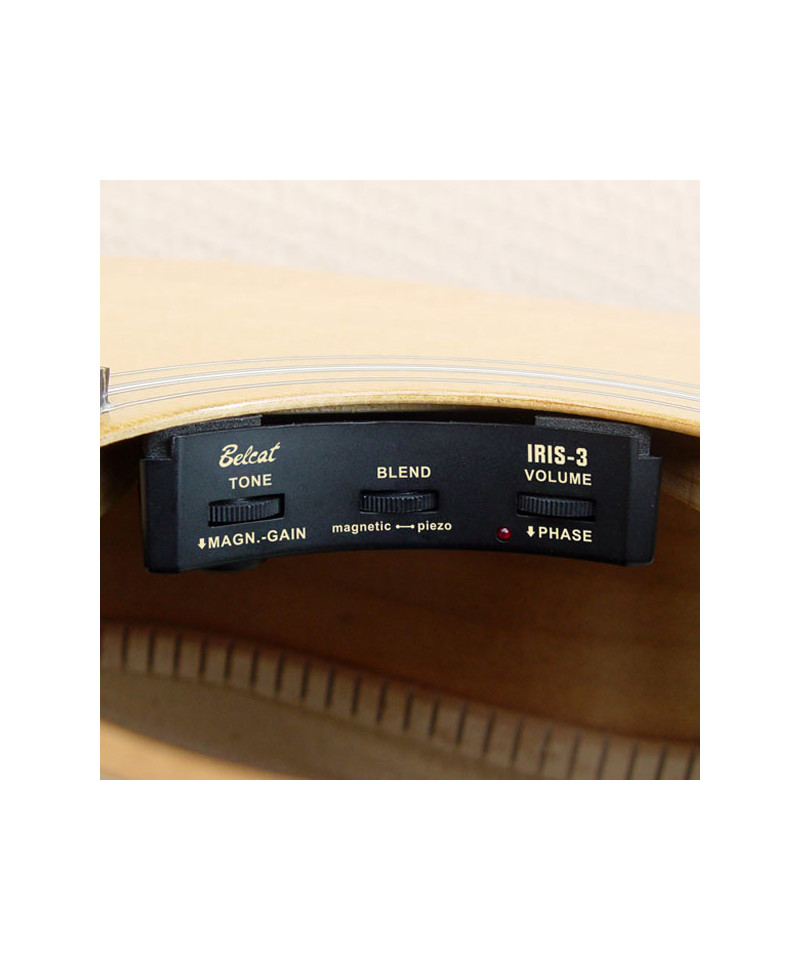 The IRIS series represents the ideal solution to amplify your acoustic guitar without affecting aesthetics and maintaining a respectful realistic stamp of your executive style. Iris-3 It is equipped with volume / tone controls, phase and mixer between omega ii / magnetic piezo pick up to ensure that authentic and flexible sound that every guitarist seeks.