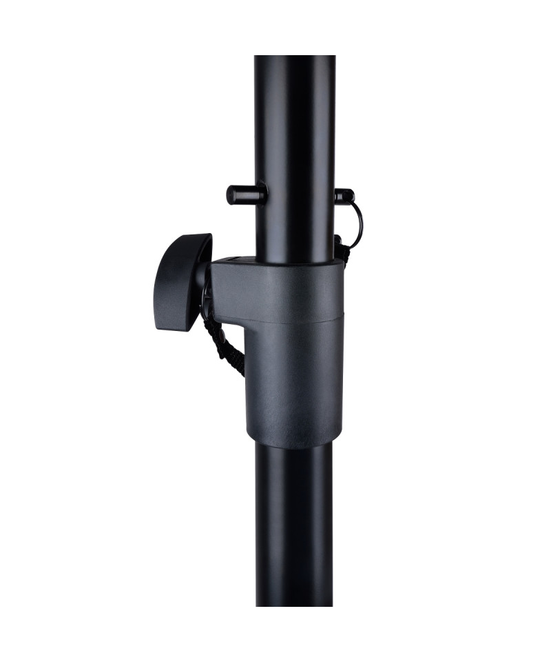 SSPSAIR is a support for acoustic speakers with 35mm terminal. The Safety Air System mechanism ensures a gradual descent of the speaker if the PIN is removed, allowing you to operate safely. The structure is in aluminum, light and resistant, with reinforced joint in die-cast steel. E'Also equipped with a screw locking system, with safety pins. Safe and resistant, it is closed and light for easy transport