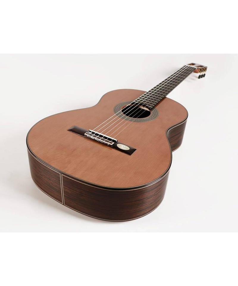 The Salvador Cortez CC-110 is one Ideal classical guitar for the conservatory, made of Canadian solid cedar, bands and high quality solid rosewood, high quality ebony keyboard. The excellent sound projection and dynamic wealth, well-defined and separate sound registers guarantee you more security and an immediate sound yield to attend the I level academic courses.