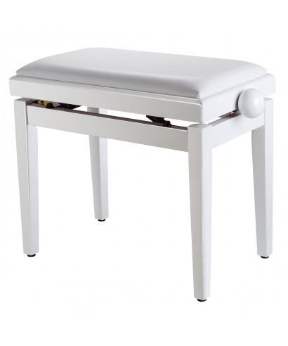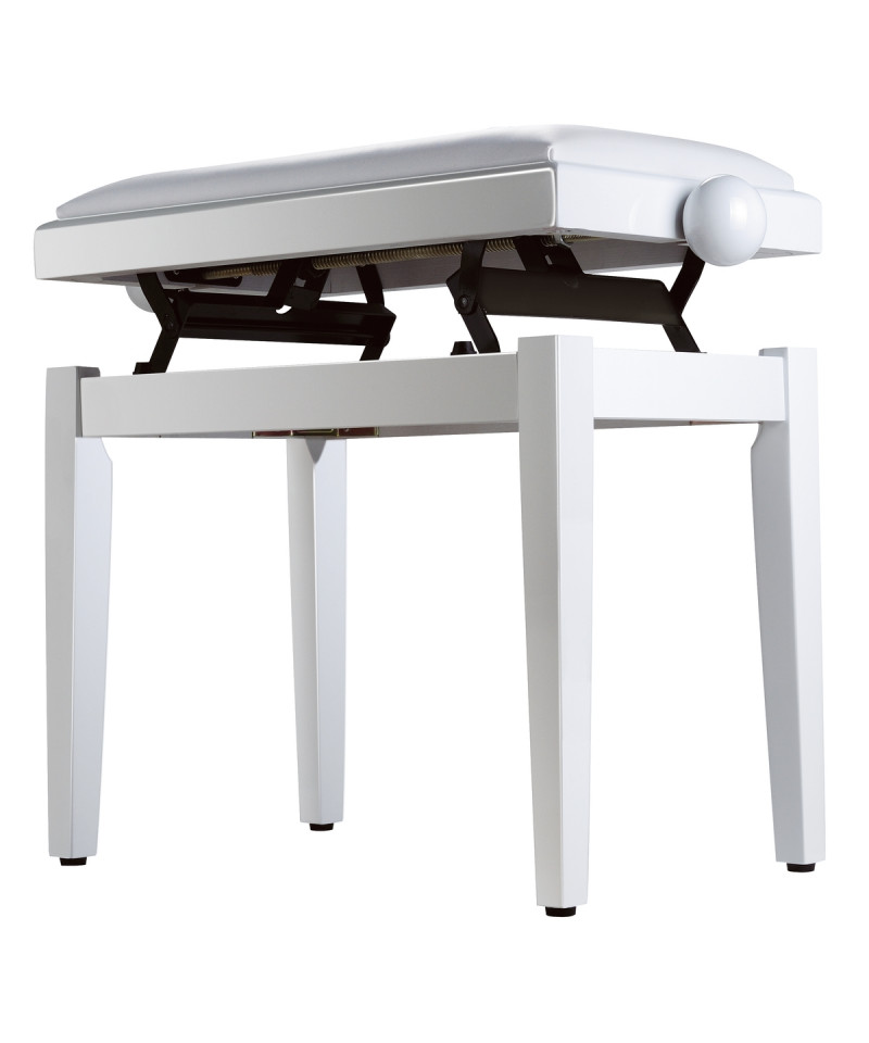 Piano bench with sitting in white sky. Adjustable height and glossy finish, classic and elegant look.