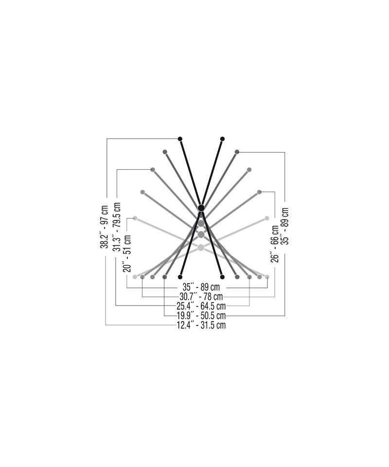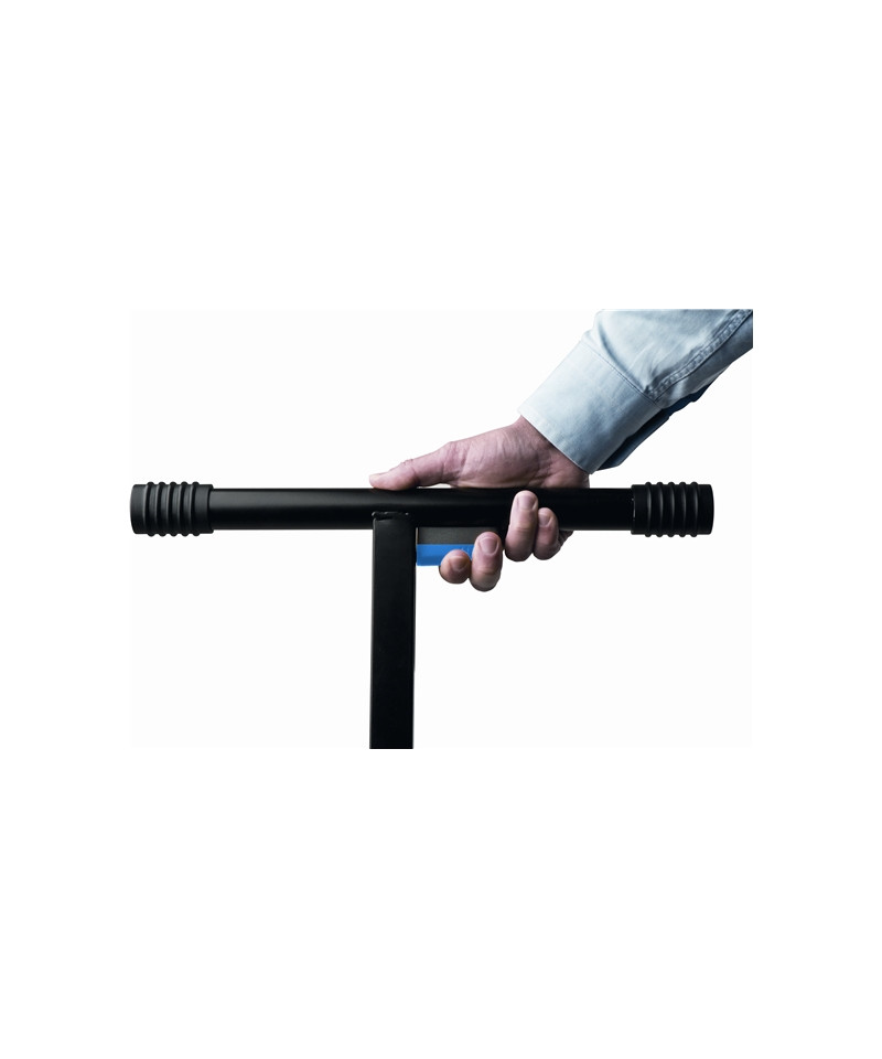 The brilliant "Trigger Lok" system designed by Quik-Lok has five predefined height positions. The mechanism allows the user to open and close the stand immediately, without having to push or pull knobs or buttons on the central disk, but simply by pressing the lever placed under the right arm of the support, and releasing it once the stand is positioned at the desired height.