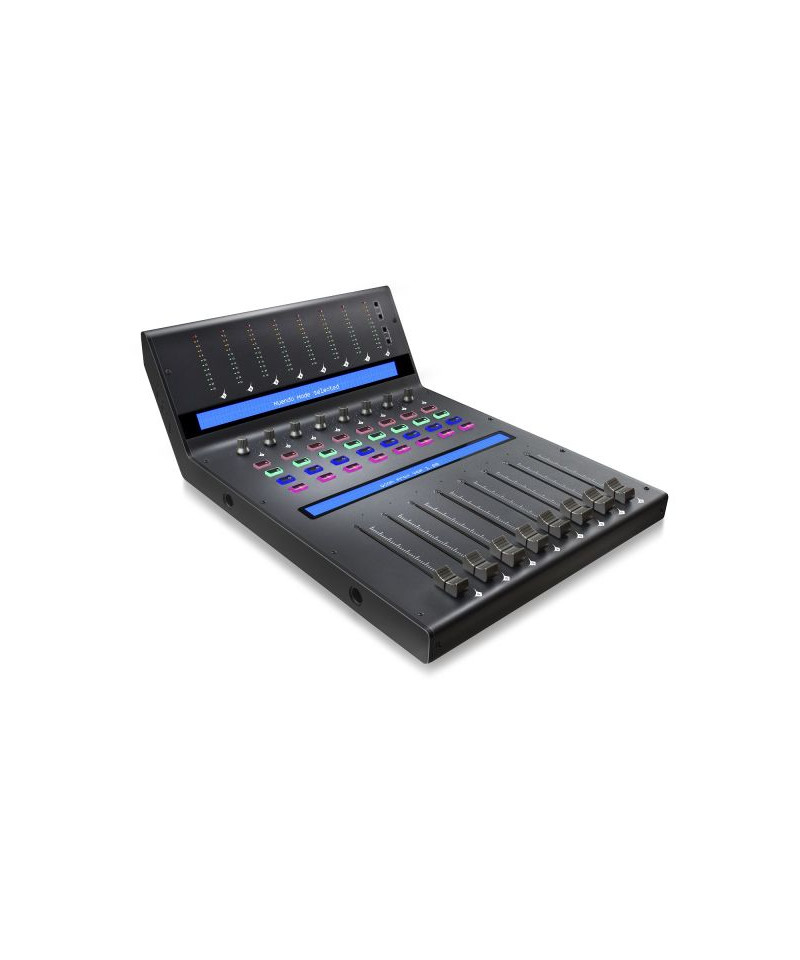 Each Qcon Pro XS has 8 faders motorized touch sensitive with 10 bit resolution, 8 double function encoders, meter bridge with 12 segment LEDs in a sturdy metal cabinet. A large double backlit display displays the channel names and various control parameters on the channels. Qcon Pro XS uses the Mackie Control protocol for Cubase, Nuendo, Samplitude, Logic Pro, Studio One, Bitwig, Reason and Ableton Live, and the Mackie Hui protocol for Pro Tools