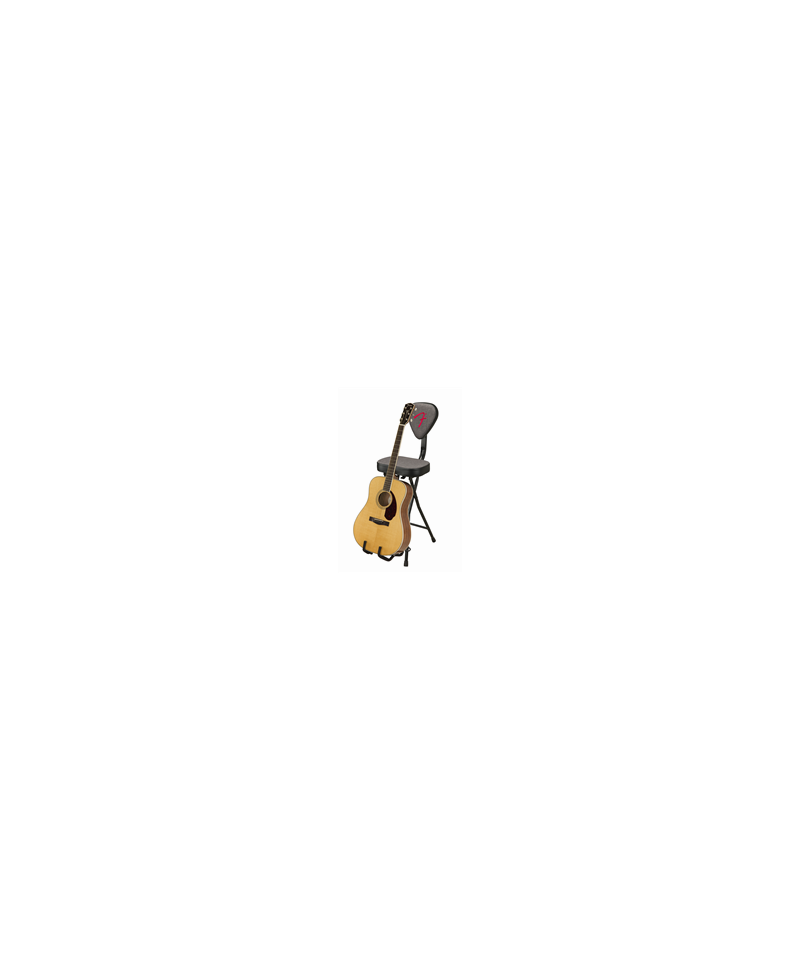 Ideal for any guitarist or bass player, this combination of seat and guitar support makes it easy to have a productive practice session or survive a long performance. Comfortably upholstered for long sessions, the seat and back-shaped Fender 351 with embroidered "F" logo are covered in Gray Tweed fabric. The base for tilting tools, designed to adapt to most guitars and basses, shows your instrument safely while the integrated crossbar footrest fits almost all leg positions. Designed for easy transport, the seat legs fold and the backrest is removable to make it even more compact when you go to a concert.