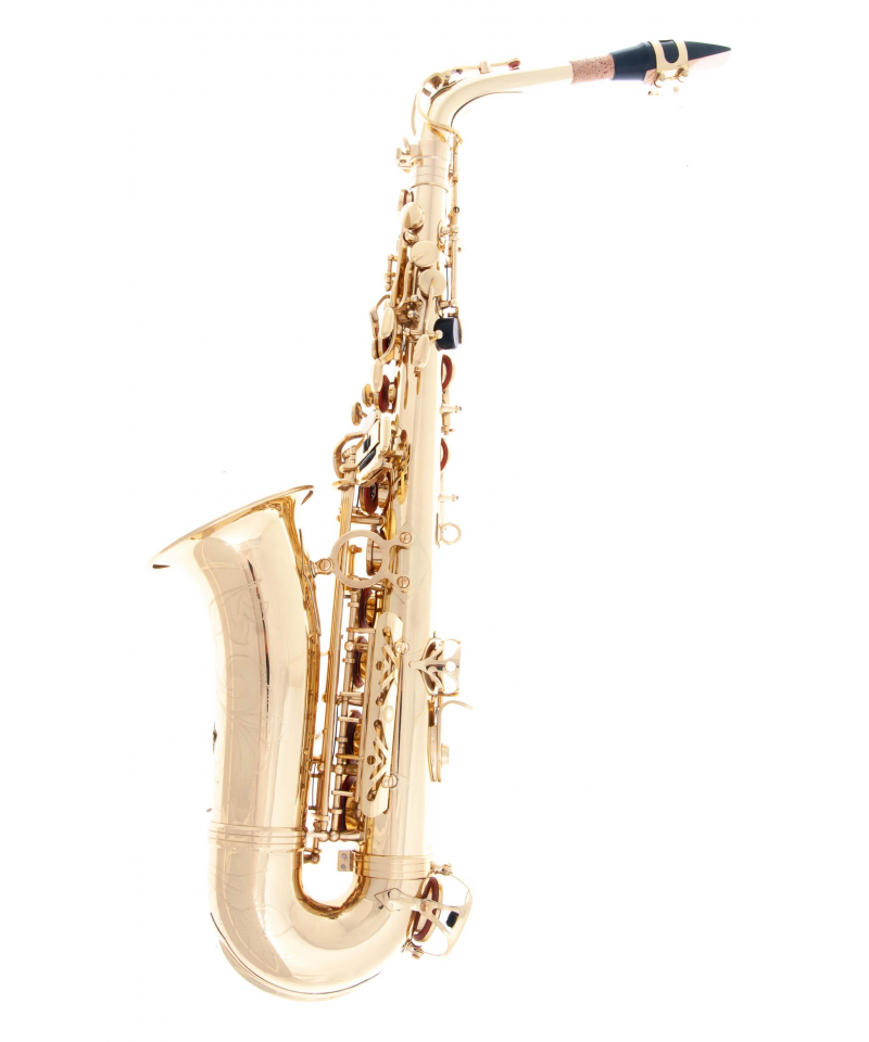 Sax high comet does # sharp with lacquered finish case buttons of mother-of-pearl keys with removable bell.