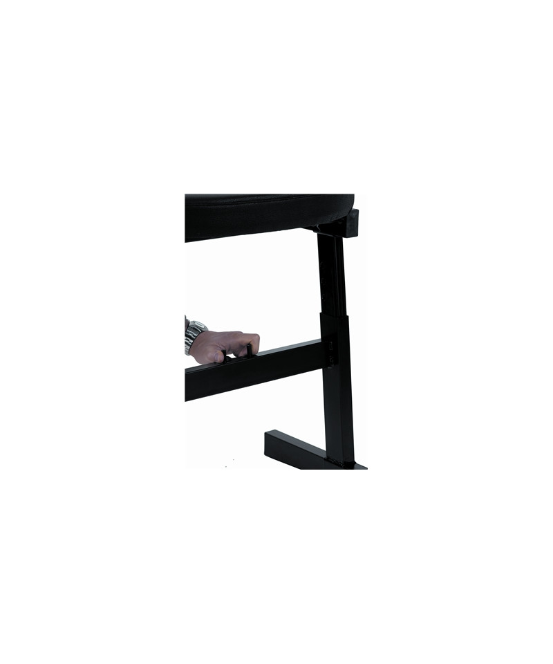 Quick mounting stool. New exclusive design opens and closes in 10 seconds. Ideal for keypads, guitarists, singers, wind players or other sitting musicians.