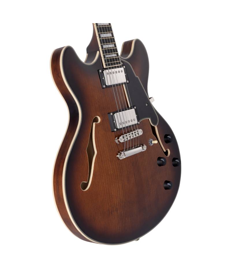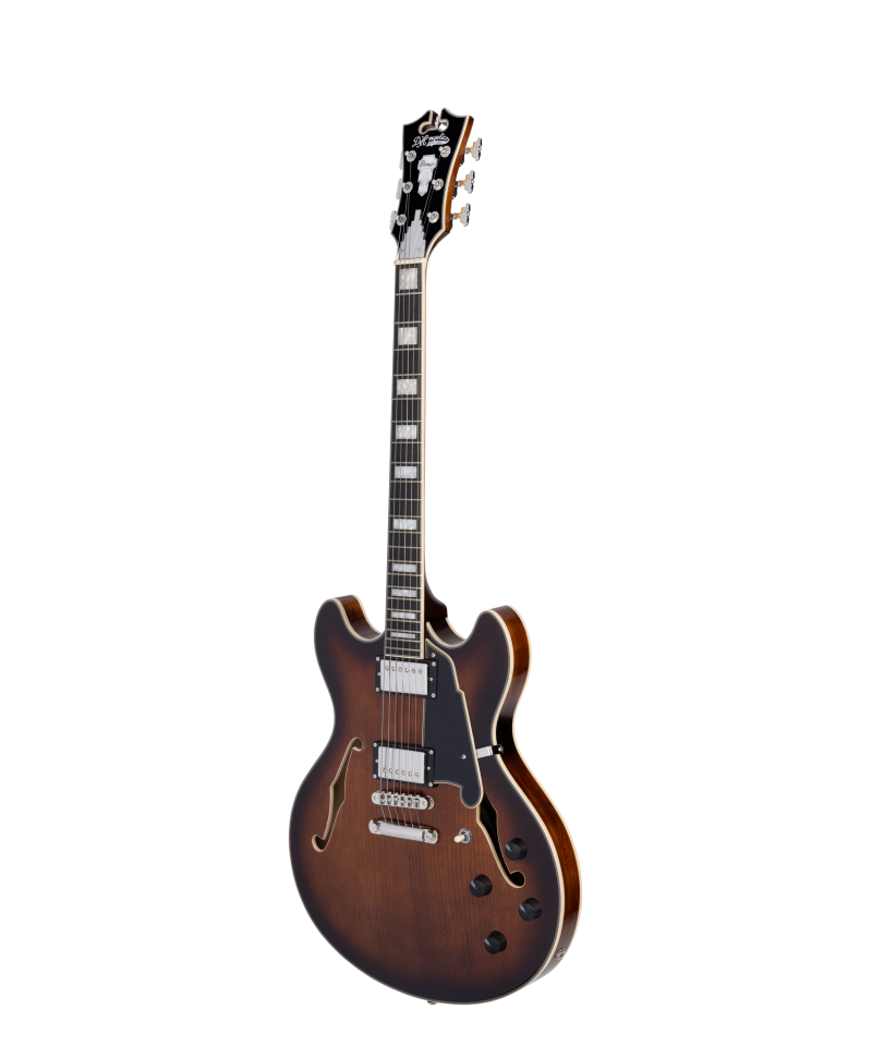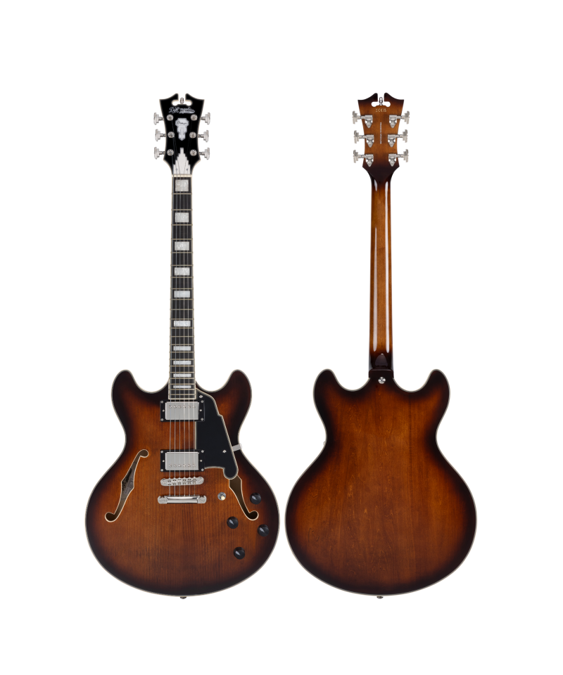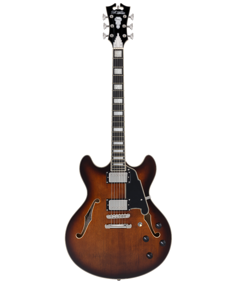 New Angelico Premier DC, a semi-acoustic Double Cutaway that combines Versatilit in jazz / blues sounds to scratches Rock sounds thanks to Herisupro Bolt Bucker A5 designed with great attention and care, a perfectly balanced tool to enter the world of semiacustiche.Corpo in laminated maple, maple handle C-Shape with keyboard in pau iron, radius 14 ", staircase 24.75", mechanical grover 109 super rotomatic, bridge with stop-Bar, chromed hardware.