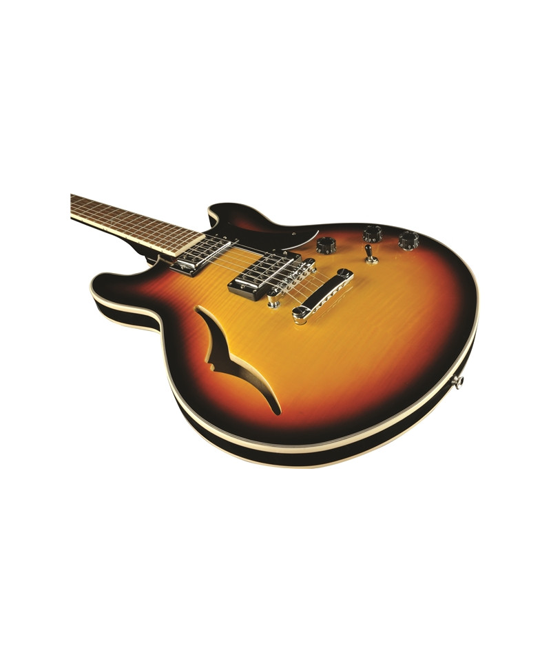 A semi-acoustic solid wood, light yield from the choice of the Swamp Ash (pally ash); The flamed maple top while the mahogany handle.