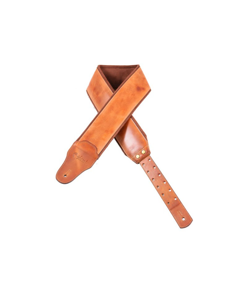 High quality leather shoulder strap, latex padding coated with microfbra, leather ends, RAS adjustment system and built-in plettri holder. Brown color, width 8 cm, adjustable length from 98 cm to 153 cm. Indicated for guitar and bass.
