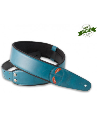 Handcrafted shoulder strap with high-tech ecological materials respectful and devoid of any animal tissue, characterized by finishes taken care of in every detail, unique decorations, high density latex padding (5 mm), RAS adjustment system, Built-in plettri door. Water green color, width 6 cm, adjustable length from 95 cm to 143 cm, ultra light. Indicated for guitar and bass.