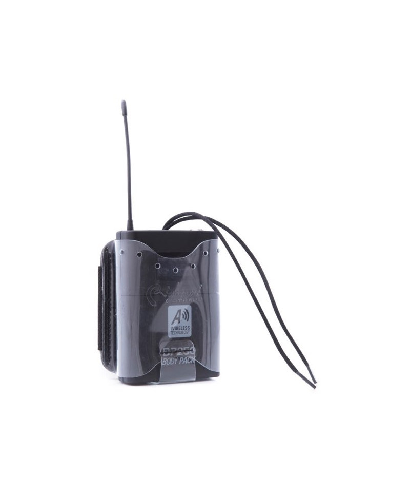 Housing for bodypack transmitters and receivers, applicable to guitar shoulder straps and low bass from 5 to 8 cm (for example those of the Jazz or Bassman series of Righton! Straps), made of leather, size 7.5 x 8.5 x 4.5 cm, black color, transparent front
