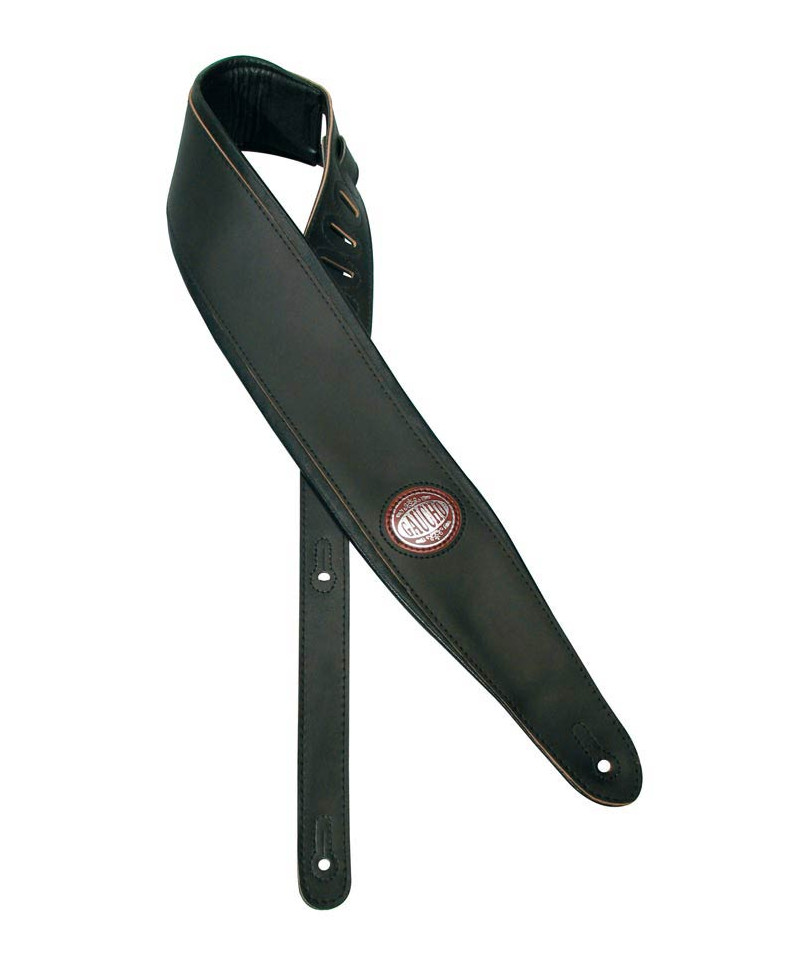 Shoulder strap for guitar, extra model-Long, 180cm long, leather, leather black with black upholstered retro.