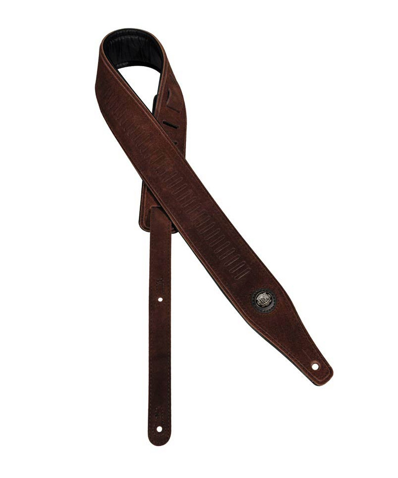 Guitar shoulder strap, top quality model, suede, dark brown color.