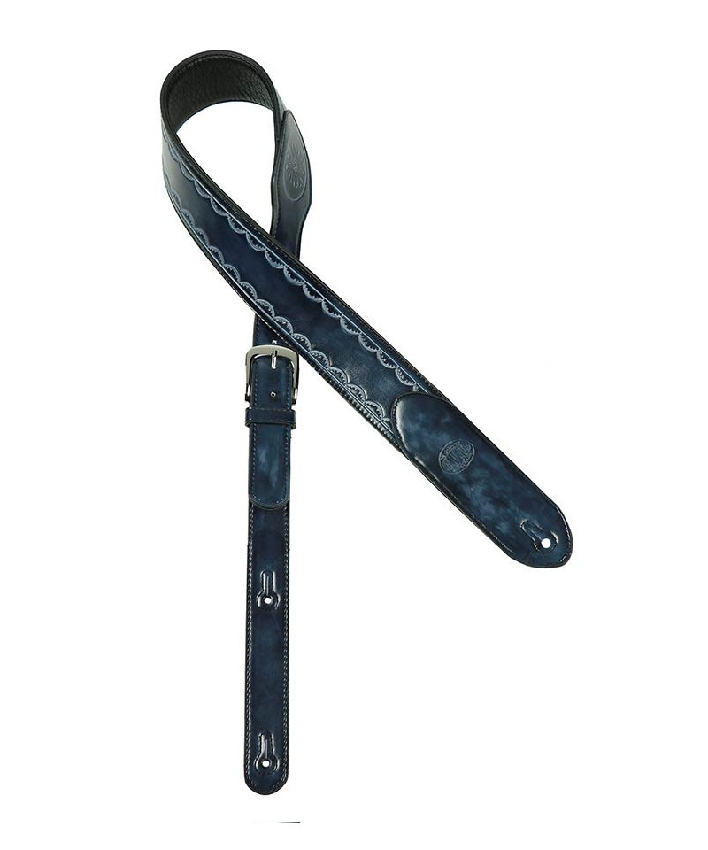 Shoulder strap for leather guitar, sculpted fractals, black