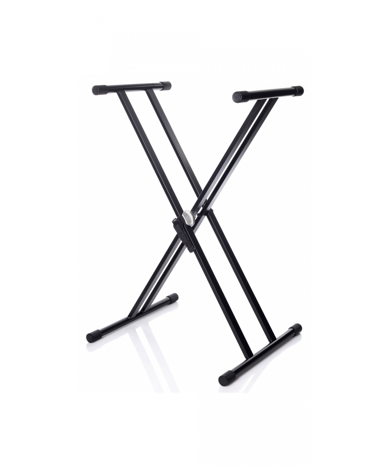 Double upright support for keyboard with loaded nylon adjustment mechanism, central lock with crocodile system