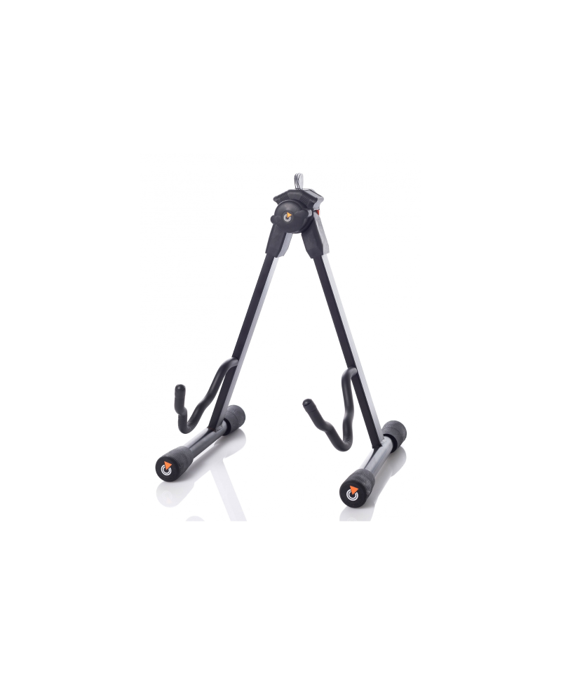 Support "A-Style "Universal for guitar and low with infinitesimal opening of the opening. Adjustment knob and support arms covered in natural rubber to ensure the safety of the instrument and to avoid chemical reactions with the painting of the same. Upper block In nylon loaded with accommodation for three pledtri (included). Self-leveling rubber feet.
