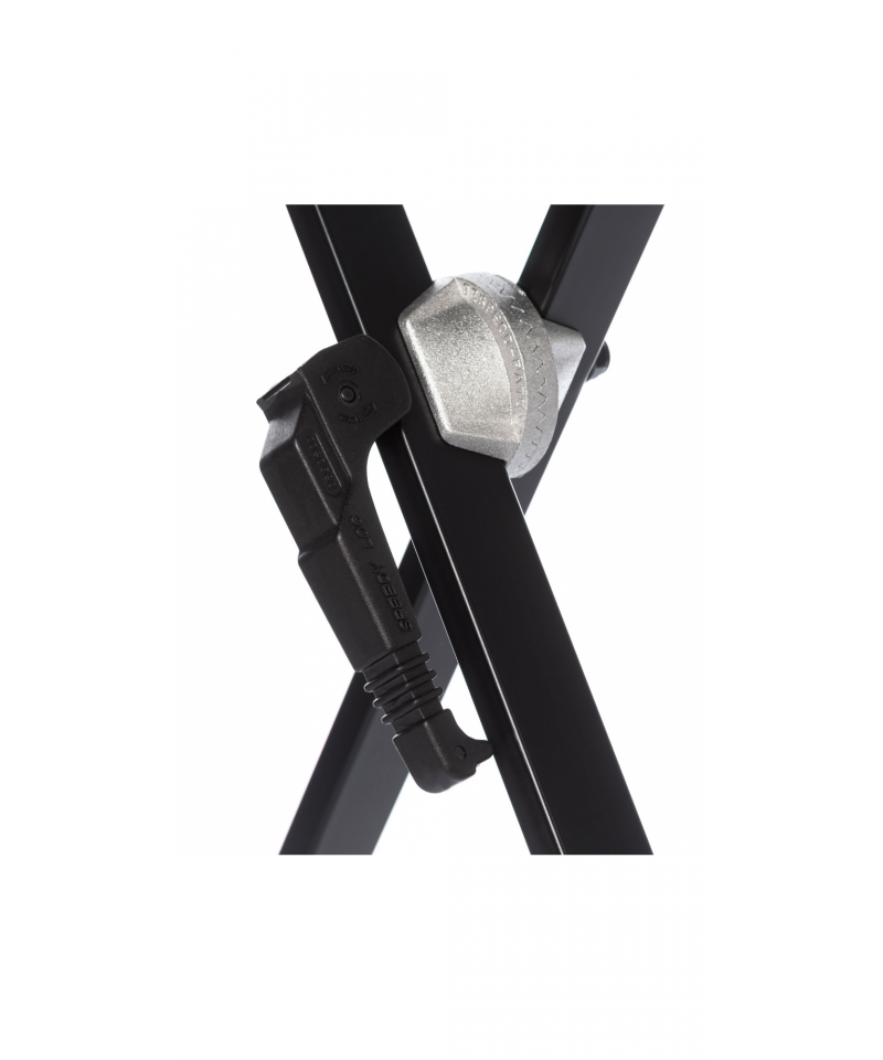 Single reinforced keyboard support with nylon locking lever. Central block with crocodile system.