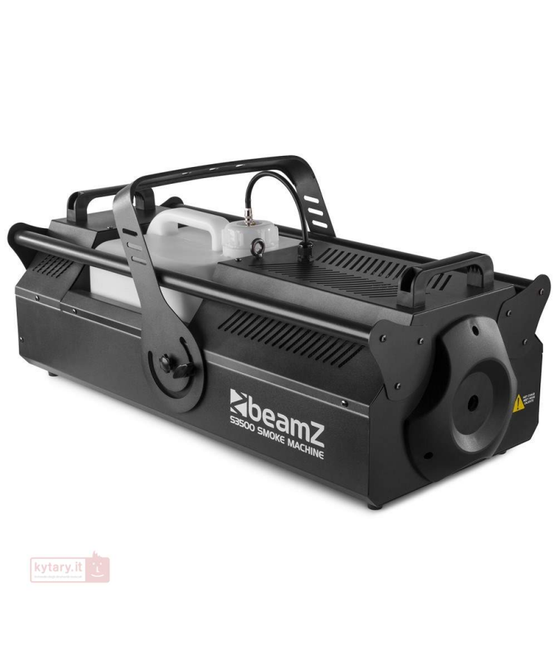 Maximum power: smoke machine with 3,500 watt heating element and 10 liter tankAll under control: Control panel with LCD screenGreat performance: emission volume of 1.217 m per minute with a maximum consumption of 210 ml per minutealways ready for use: heating time of 6 minutes and 90 seconds to return to the temperature necessary after the first issuePractice to check: with DMX configuration or with the remote controlEasy to carry: thanks to the support bracket and the two handles