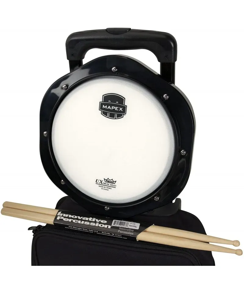 This Mapex percussion kit comes in a resistant trolley-style wheel case and a handle for easy transport, metal bars from 1"So that they can endure hours of use and a pad for the practice that replaces the snare.