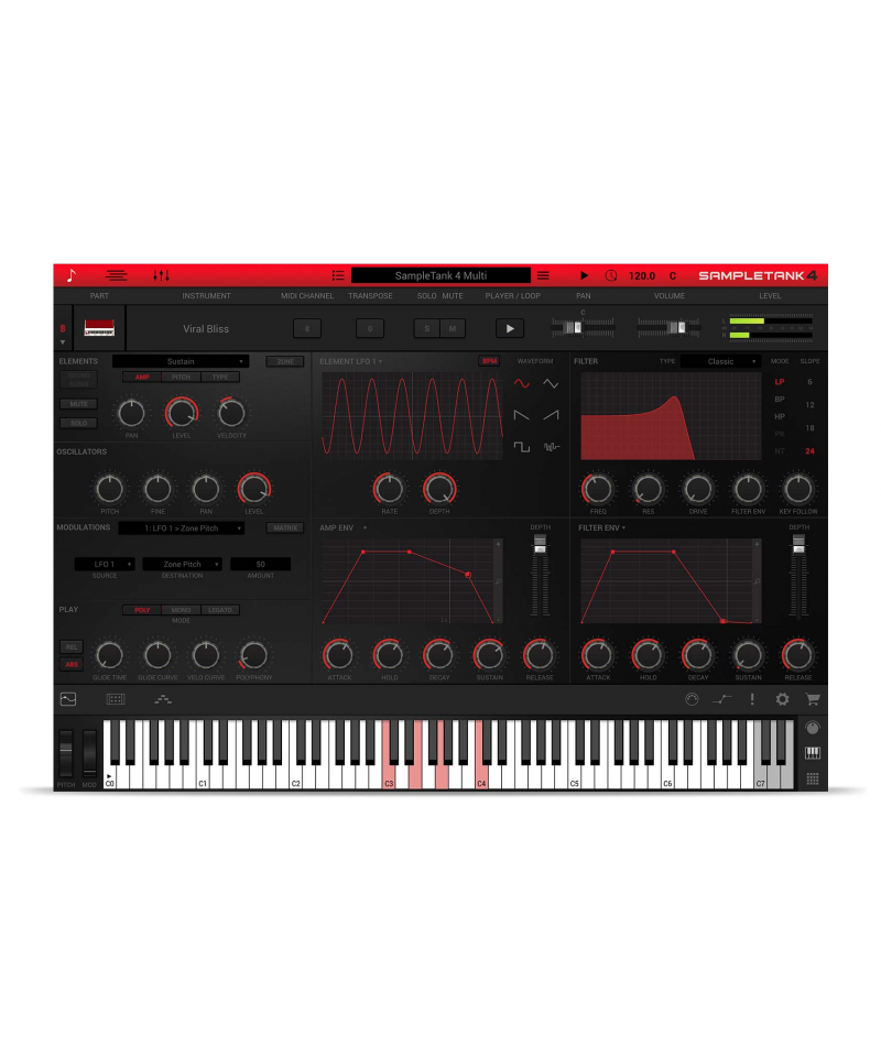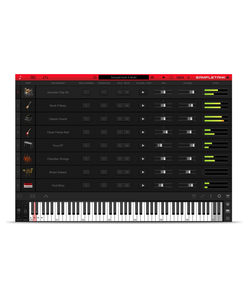 The fastest way to your song of success. The new Sampletank 4 It has been redesigned from scratch to be the ideal workstation for every type of musician. A new resizable interface, the further expanded sound library and a new cutting-edge sound engine, offer all the most powerful musical creation tools than ever. What you normally may require several plugs-Ins can now be made within SampleTank 4, for an even faster workflow, without losing inspiration. It immediately finds any type of sound and customize it according to your needs with the new checks on the editing page and the new modulation matrix. The new "Groove Player" as Arpeggiator, Strummer, Pattern and Loop Player - Now add to the sounds, inspiration for your tracks. Furthermore, the new live mode makes SampleTank 4, perfect for your performance, with the possibility of creating entire sets-List and easily map every parameter according to your needs.