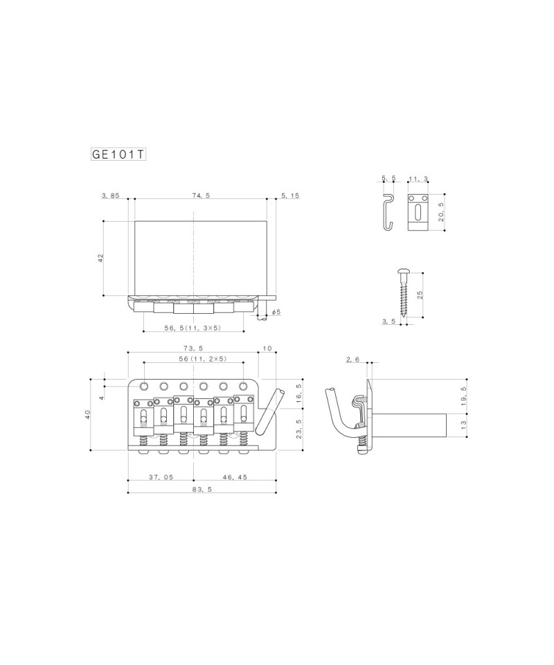 Bridge Tremolo Wilkinson by Gotoh with vintage design, ideal as quality replacement, guarantees great stability and indicated intonation for guitarists who want to obtain the maximum performance and safety of intonation in every situation. Accessories for mounting and operating included (lever, springs, anchor screws).