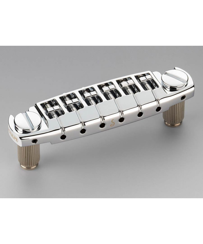 The new Schaller Signum Locking bridge designed to improve the sound and look of your instrument. The special design allows a perfect support of the rope on the contact surface by offering a superb timbre definition. The processing of the saddles generates a perfect resonance and an increase in dynamics, sustain and harmonic. All the elements have been designed to offer incomparable executive comfort. The holes of the strings are optimized to allow easy and quick replacement. Spacing 10.5 mm, Radius 12, chrome.