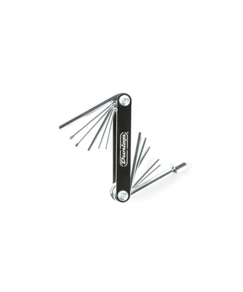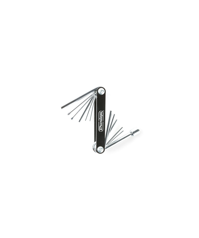 Multi-Tool Dunlop is a screwdriver, a tube key and an Allen key all in one, with numerous accessories to help you keep your instrument in perfect shape. Whether you need to adjust the Truss-Rod, remove the battipen, or adjust the action of the ropes and the height of the pickup, this accessory is useful with almost all the tools.