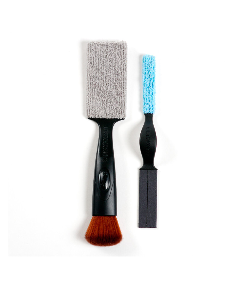 Nomad Tool's soft brush fibers help prevent dust accumulation and allow a delicate body, bridge and pick treatment-up