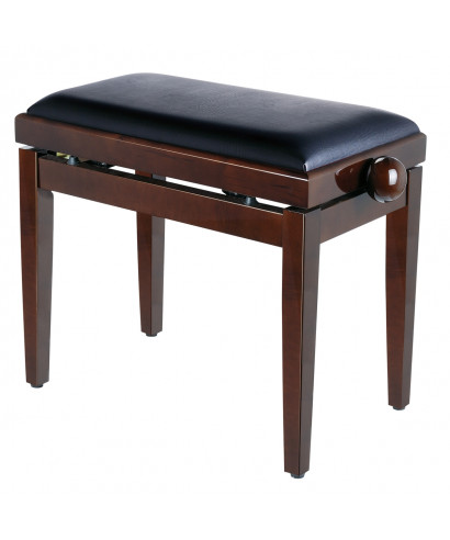Piano bench with sitting in brown sky. Adjustable height and glossy finish, classic and elegant look.