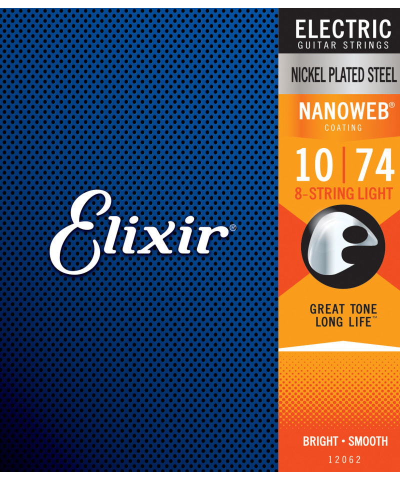 Electric guitar strings 8-Ropes with Nickel steel wrapping-plated. Use for their brilliant and vibrant presence and for Punch Dinámico. Nanoweb ™ coating offers a molbrid feeling. Our coating technology protects from corrosion and accumulation of dirt, prolonging the sound quality more than any other rope, coated or uncoated, on the market. (Elixir Strings Player Survey). The anti plating-Rust on steel strings ensures a long time to sound on the whole set. Light scaling: .010 .013 .017 .030 .042 .054 .064 .074