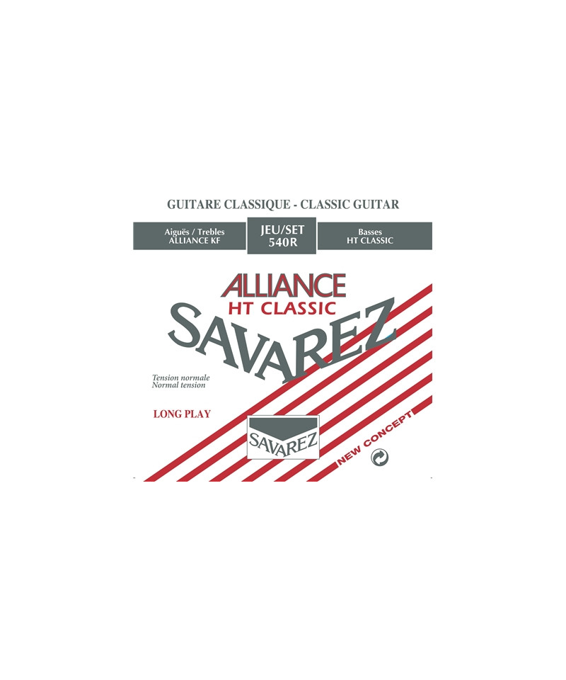 The 540R, 540J and 540RJ string sets consist of: - Acute KF Alliance strings in composite material (called carbon ropes), - HT Classic low stabilon multifilament ropes (specially treated nylon) protected by a silver plated winding.