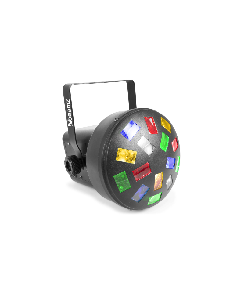 The Mini Mushroom is a classic effect with a modern cut. This Mini Mushroom has 6 high power LEDs in the colors: red (2), green, blue, white and amber. The 15 lenses create 90 different light beams, which will allow this effect to be noticed. The LED mini mushroom is exceptional for small clubs or for DJs