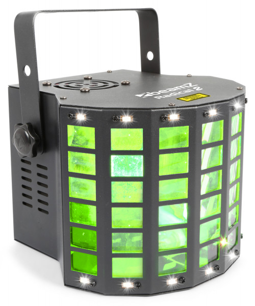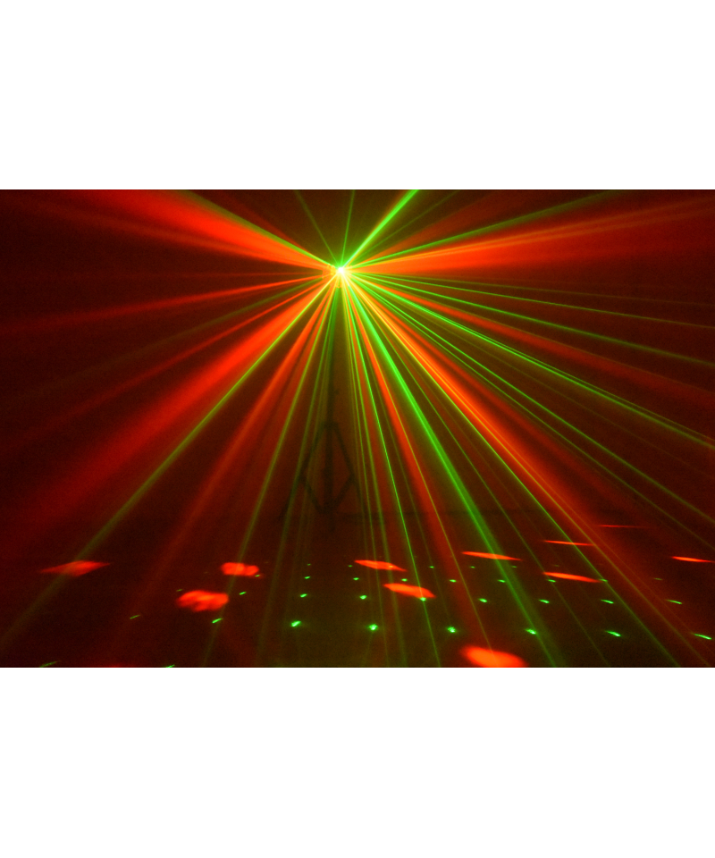 The Radical II LED combines the power of 3 effects in one unit. The combination of wide angle laser beams and clear and colored LED bundles will march in more of each party. The SMD strobes allow you to create strobe effects and appealing chase. The pre-shown-Scheduled combined with the Master / Slave mode make Radical a good effect for DJs and entertainers. For advanced users, the unit equipped with a 4-channel DMX mode for the control of each LED and the engine, makes it suitable for show and events