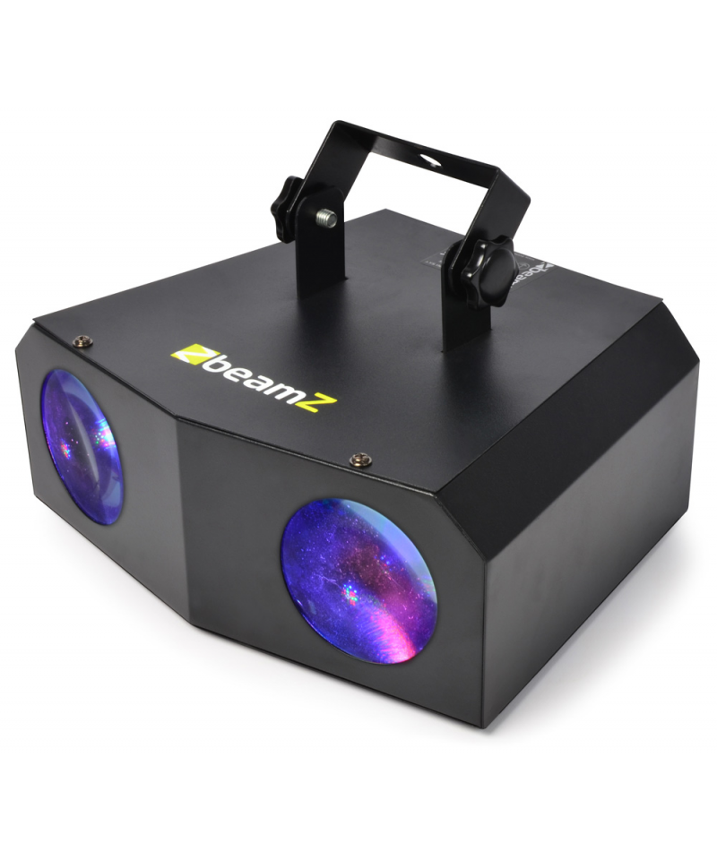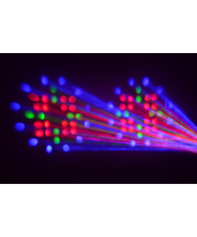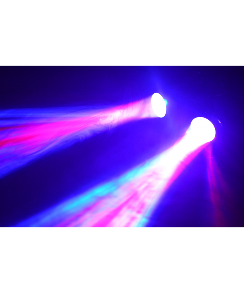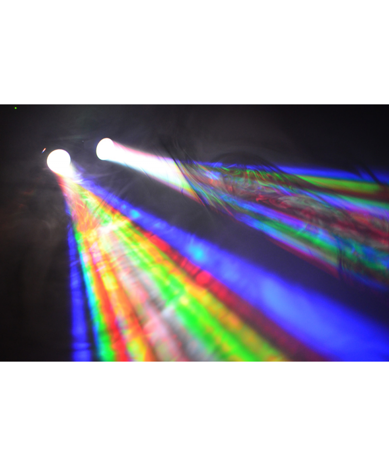 Double RGBW LED effect on sound activation capable of creating bright and colored patterns in red, green, blue and white. Powerful LEDs allow an impressive light output. Ideal for DJs always moving and for installation in small environments