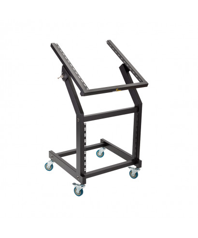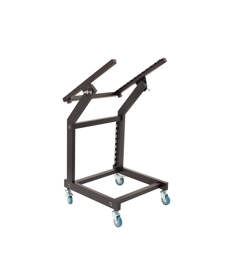 Crack series rack supports-100 are built in steel and allow you to stay various equipment in a simple and safe way. E'Equipped with vertical and horizontal housings, useful for easy access to equipment like mixers. They are equipped with 4 wheels with block. Ideal for fixed installations, recording studios and stages.