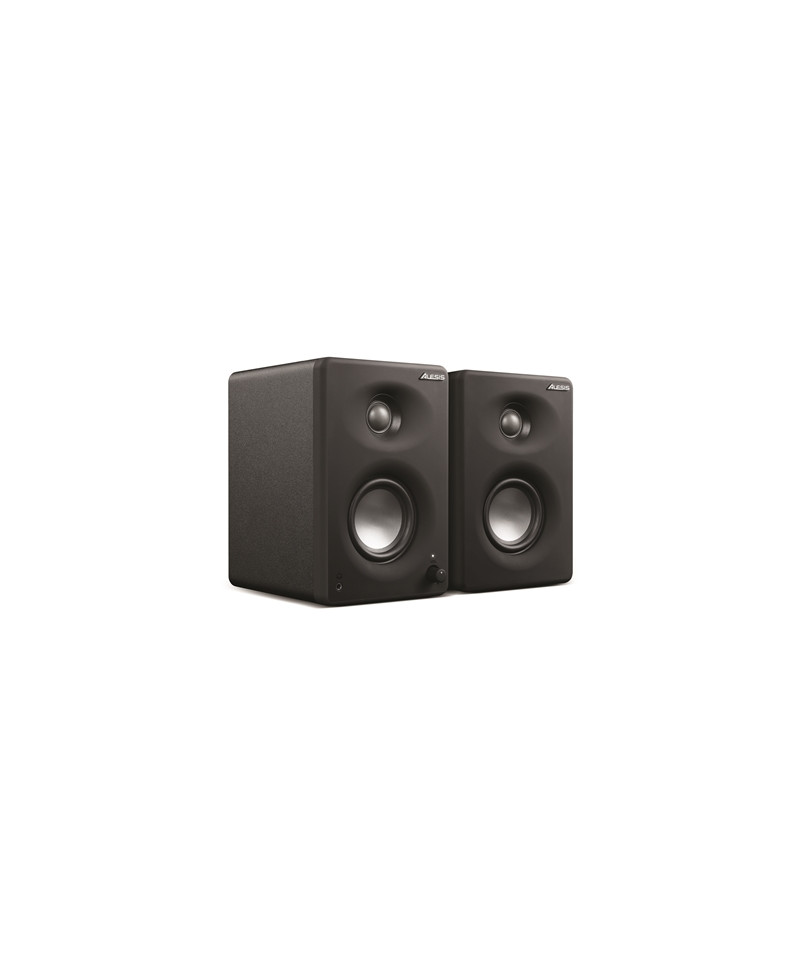 The tweeter is located inside an ad hoc designed waveguide from Alesis engineers to ensure better dissemination of high frequencies and avoid random dispersion outside the Sweet Spot. The beveled shaping of the cabinet edges, built in HDF and painted with an elegant metallic black paint, prevents turbulence and possible artifacts deriving from angular diffraction. A BASS BOOST switch allows, if there is a need, to increase the power of low frequencies.