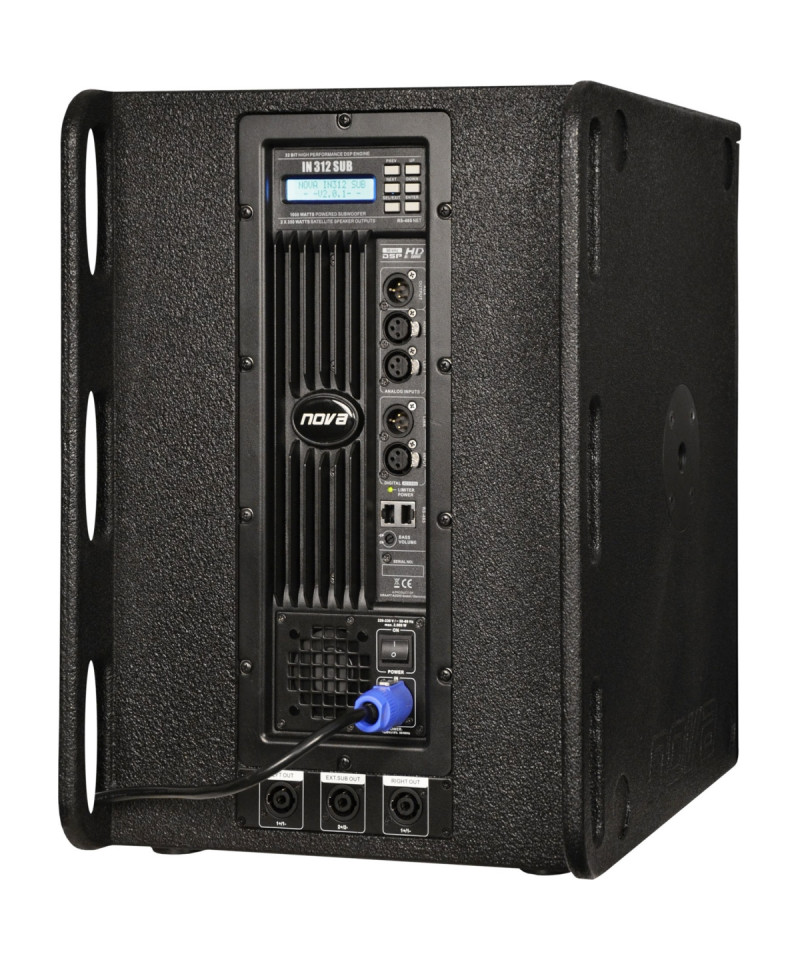 Sub active with 3 integrated finals (2 columns + 1 Sub), suitable for fixed and mobile installations, equipped with a 12 "neodymium woofer. IN312 sub is very flexible, ideal for speech and musical applications as a subwoofer in more complex amplification systems (in combination with speakers a IN6 column and the IN12 passive sub gives life to the system i.Nova 360 Plus). The frame is built in 15mm birch plywood with black finish NOVA © polycoat. The rectangular cabinet is equipped with eight handles and a metal front grille covered in coal foam.