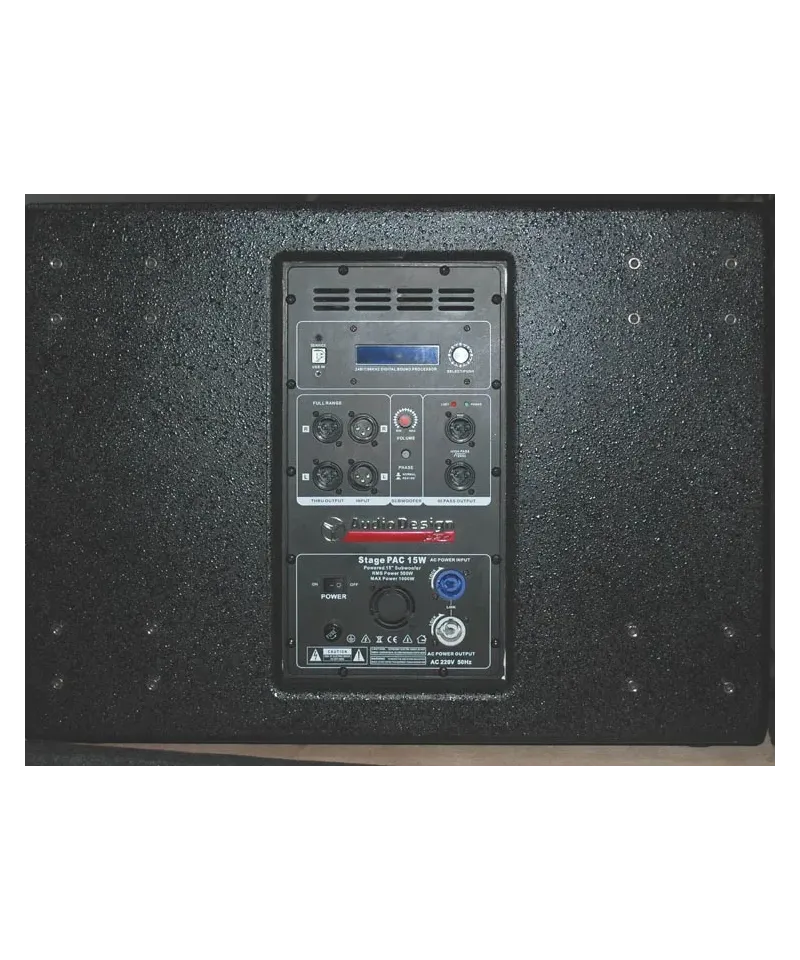 Woofer with compact dimensions and extremely low weight, with a great versatility of use (horizontal or vertical). Power and efficiency are high, with modern electronics (class D-class amplification and management with DSP). The DSP provides for some user-adjustable base functions without a computer. A rotating knob allows you to change some functions including the low pass filter of the subwoofer, the high pass pass filter of the High Pass output, the phase (0-180 °), adjusting the entry sensitivity. The functionality is intuitive and the display allows you to check the settings change that are then confirmed with the pressure of the knob itself.