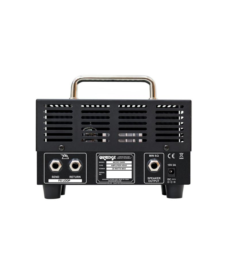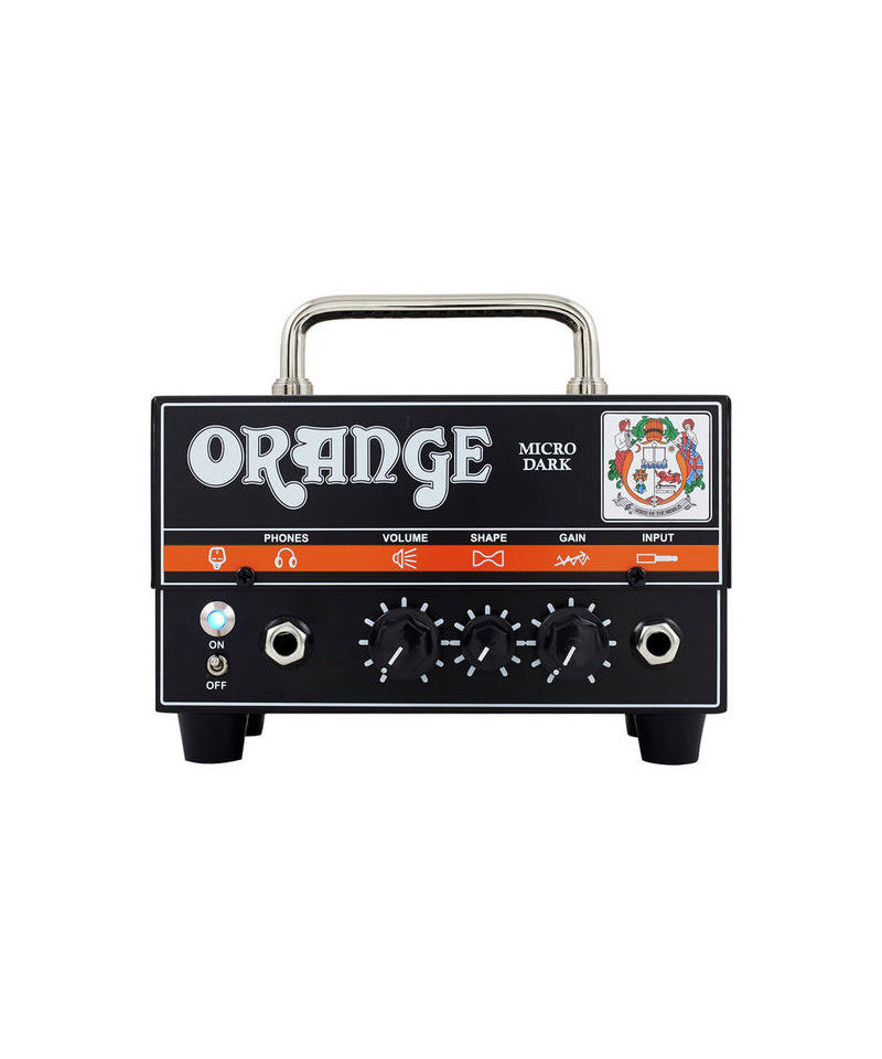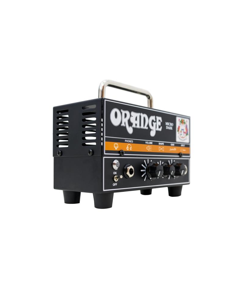 The Micro Dark shows a new high gain circuit that combines valves and solid state technology. The preamplifier uses a single 12AX7 / ECC83 valve and produces a wide range of sounds that can be used with hot clean sounds, soft and fat overdrive, hot distortion. Sturdy design, the solid state output section indicates the Micro Dark can be coupled with any cabinet 8-16 ohm. Orange's exclusive Shape control modifies the response of the midrange, interacting simultaneously with the high and bass. Starting from the 12 aircraft location, a thin rotation on the left adds more mid-range and blunt the high. A notch or hourly reduces medium frequencies and makes sound more brilliant.