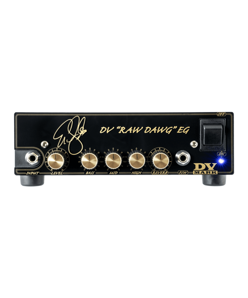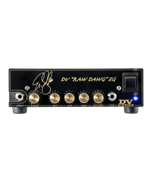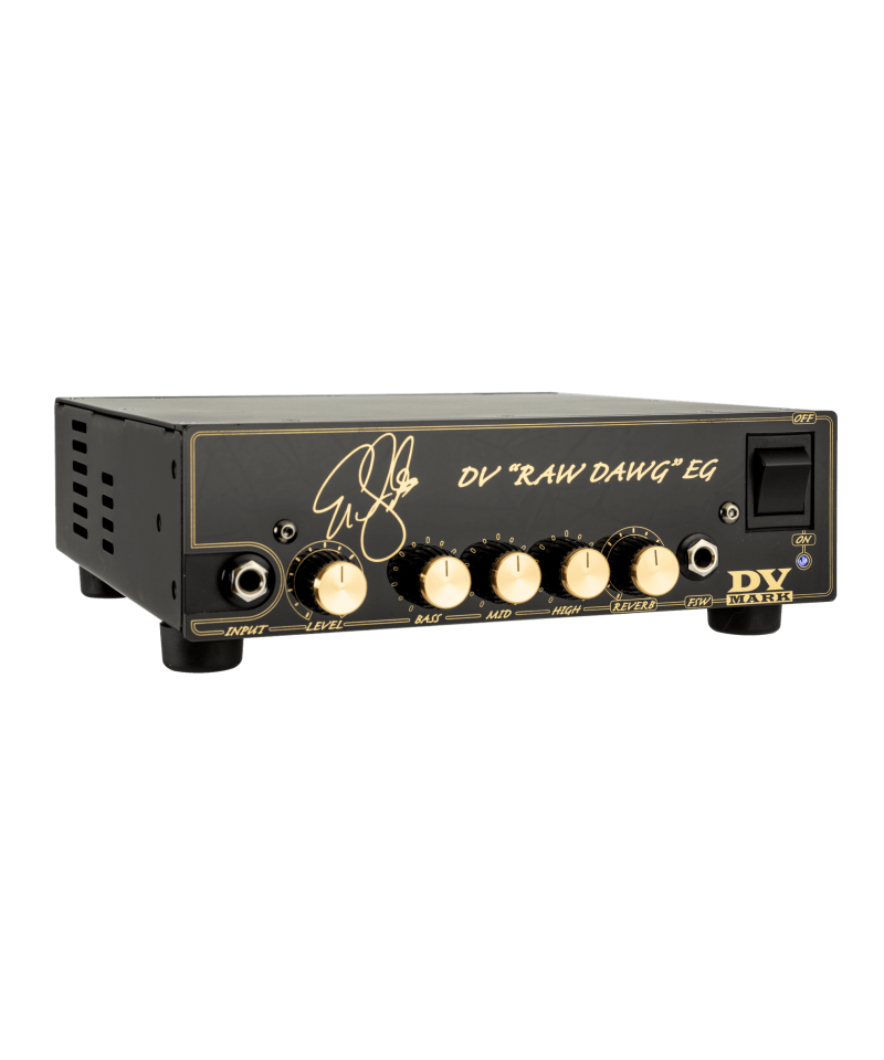 He wanted only a single bright and powerful channel with a large power amplifier to get a huge headroom and dynamic. The DV "RAW DAWG" EG a single channel head with exceptional sound, characterized by a surprising clean sound powered by a 6205 valve in the preamplification section. Thanks to CI, Eric can get a great super sound-Clean with which to use all his favorite pedals, always obtaining that typical valve bite. A reverberation from the exceptional sound and a 250W MPT final complete this black beauty.