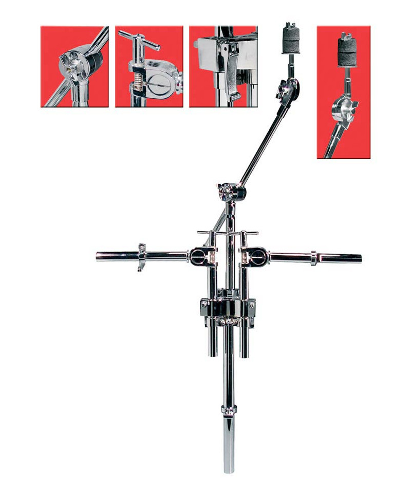 Double Tom support with half-mast for plate, 1 pin, 2 arms Tom, Easy Lock, without bracket