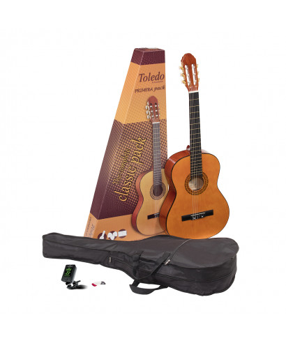 Primera Guitar Pack is the best way to enter the magical guitar world! A complete package composed of a classic primera guitar, a clip tuner CCT-20, plettri and bag. Available in 3/4 and 4/4 version with a glossy natural finish.
