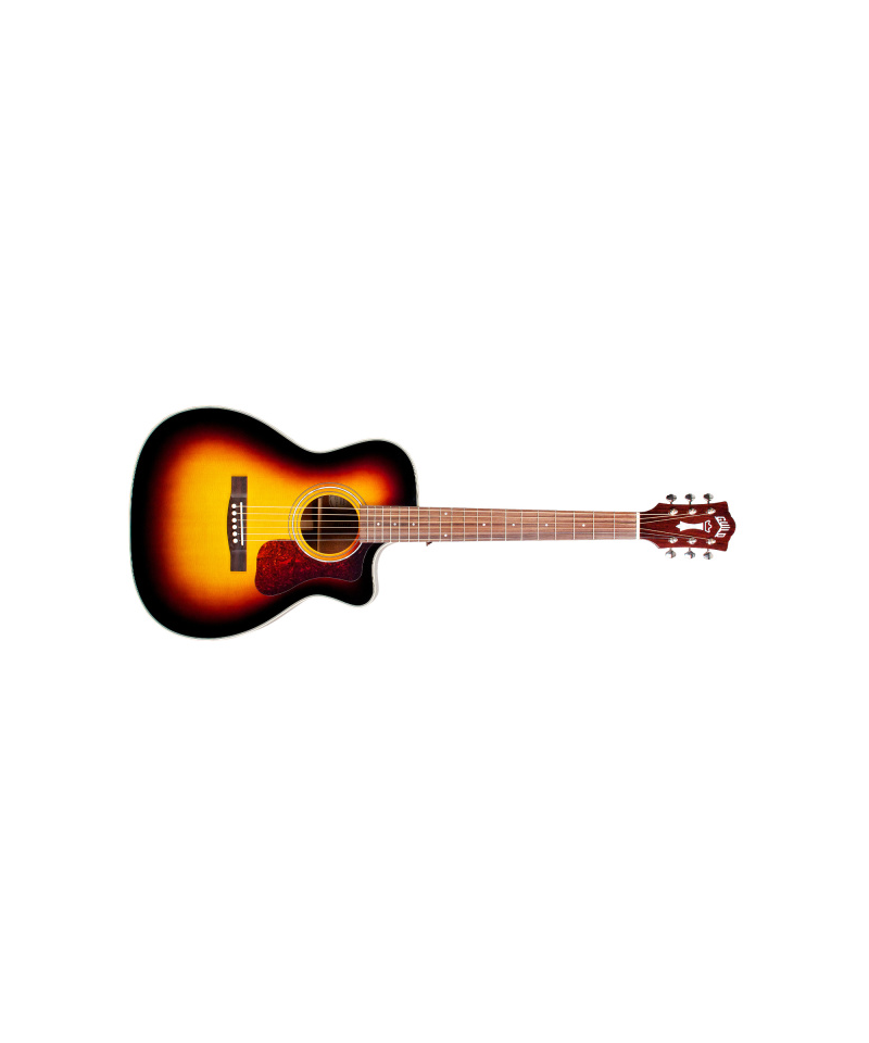 The OM-140CE has a solid Sitka Sitka, bottom and bands are in solid African mahogany, a rosewood keyboard and bridge. An elegant cutaway allows easy access to the high keys of the instrument. The supplied pickup a Fishman GT-1 Sonitone for live-level live performances. Other features include the Nut and Bone Travers, mother-of-pearl rosette. Width of the Capota (NUT) 1 3/4 '' (44.5mm), with vintage style C profile handle, the iconic chesterfield palette, '60 guild emblem, with mother-of-pearled logo, vintage battipen in tortoise celluloid and the new case Lightweight Guild in Polyfoam complete the equipment. The polyurethane and glossy finish (gloss) Antique burst. '